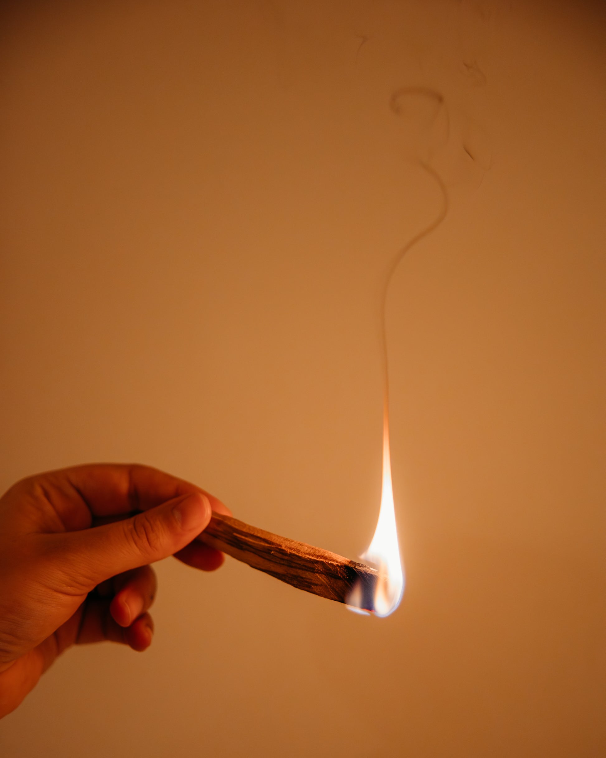 Light the tip of the stick and let it burn for around twenty seconds. Gently blow out the flame and allow the aromatic smoke to drift through your space. Always extinguish in a fireproof bowl.